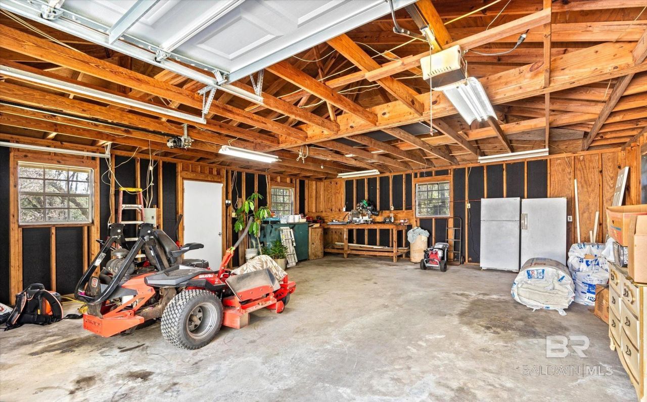 Located in a highly sought-after school district, this all-brick ranch sits on a quiet cul-de-sac in the heart of town while offering a private, tucked-away backyard. The home features a formal living room with parquet flooring and a flexible space that could serve as an office, playroom, or additional storage. The kitchen includes an island, stainless steel appliances, and classic split-brick floors that open to a separate dining area. Additionally, there is a 350 sq ft sunken living room/bonus area with a wood-burning brick fireplace, LVP flooring, and built-ins. The layout includes three bedrooms and one and a half baths, with the primary bedroom featuring the half bath. Outside, enjoy a large, covered patio, overlooking the back yard, and a detached two-car garage with power, offering excellent space for a workshop or additional storage. Termite bond in place. This solid home presents a great opportunity for cosmetic updates to make it your own in one of Saraland's most desirable and growing areas. Home is being sold as-is, where-is. Buyer to verify all information during due diligence.