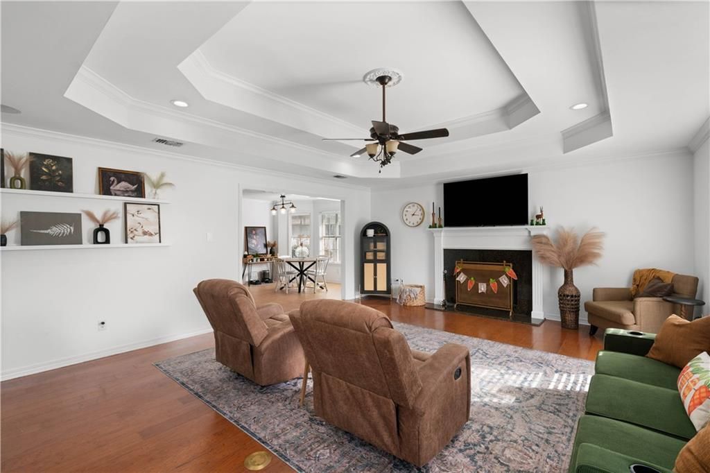 ***OPEN HOUSE, SUN., MARCH 15TH, 1-3.***Back on the market! Due to no fault of the seller, this beautiful home is available again-don't miss your second chance to make it yours.Move-in ready and thoughtfully designed, this home offers a semi-open floor plan with a bright eat-in kitchen featuring granite countertops that flows seamlessly into the main living area ideal for everyday living and entertaining. Hardwood floors, abundant natural light, and flexible living spaces create a welcoming atmosphere from the moment you step inside.The home features 3 bedrooms and 2 full baths, plus a versatile bonus room that works perfectly as a family room, home office, playroom, or additional living space. The living room and primary suite showcase double tray ceilings, while the bonus room offers a vaulted ceiling for added character. Pocket doors throughout enhance functionality, and a cozy wood-burning fireplace anchors the main living space.The primary suite includes a walk-in closet, jacuzzi tub, and access to a covered porch with ceiling fan for added comfort. Outside, enjoy multiple outdoor living areas including a patio, deck, and custom firepit with pergola and swings. The fully fenced backyard offers raised garden beds with berries, a beautiful peach tree, and plenty of room to gather or unwind.Additional features include covered parking, a workshop/shed with electric and lighting, tankless water heater, crown molding throughout, soffit lighting, motion-sensor carport lights, double gate for easy access, and a large attic for extra storage.Listing agency makes no representation of accuracy of any information deemed important. Buyer/buyers agent to verify.