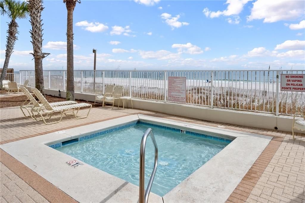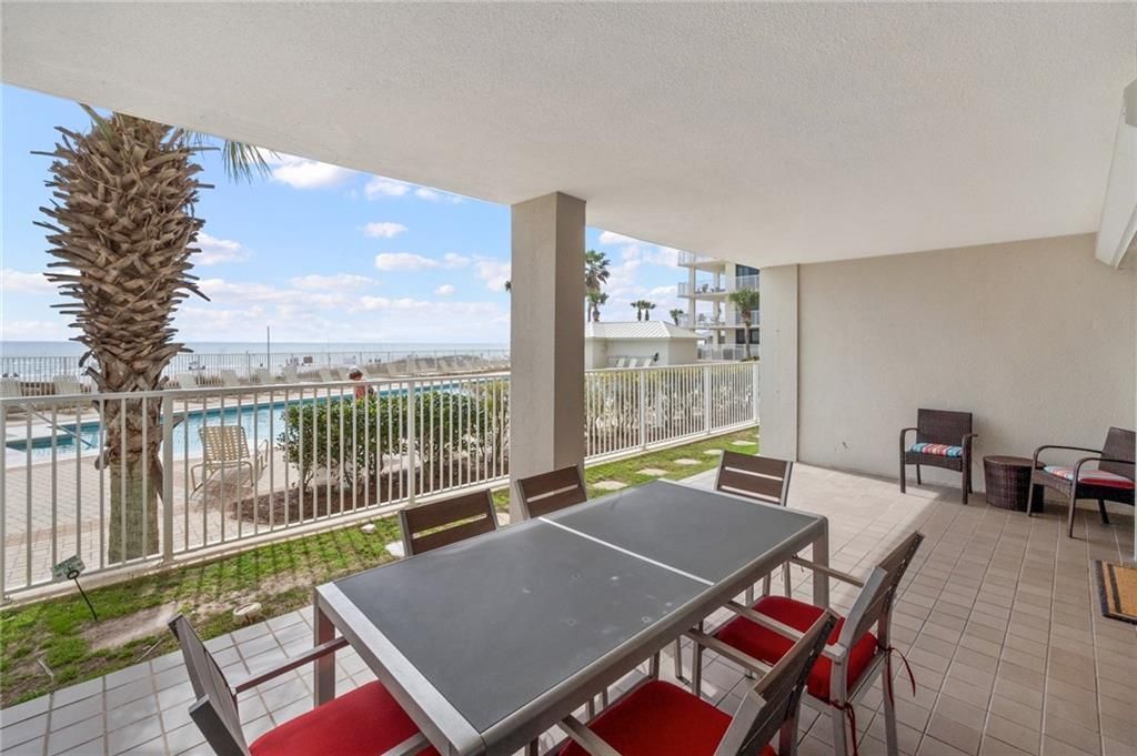 Own a slice of paradise in Orange Beach at Pelican Pointe's unit 104! This ground floor, gulf front condo allows gorgeous views and effortless access to both the pool, the white sandy beach and the Gulf! Enjoy coastal living in this decorated and fully furnished 3 bedroom, 2 bath condo. Enjoy morning coffee and breathtaking sunsets from the oversized covered patio. Condo features an open-concept living/dining area with lots of natural light as well as plenty of space for entertaining and relaxing after a day at the beach. Well-appointed kitchen offers granite counters and white cabinets. Spacious layout. Washer and dryer in hall closet. Pelican Pointe has a generous private beachfront along with resort style amenities such as indoor & outdoor pools, hot tub, fitness center, tennis court, BBQ area and more. Direct beach access! Guard at gate. This condo is an ideal investment for personal use and/or a high-performing rental property. 84 total units in building. 2 owner parking passes. Guest parking is $50/day. Buyer to verify all information during due diligence.